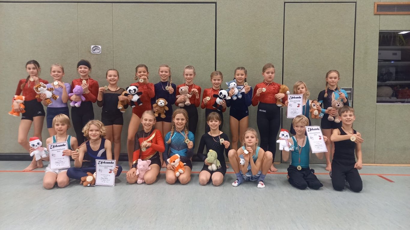 Nicht zuletzt deshalb weil dieses Jahr der Wettkampf genau auf den 6. Dezember fiel, gab es einen Moment, der bei allen Teilnehmerinnen wohl länger im Gedächtnis bleiben wird als jede Punktzahl: Pünktlich zur Siegerehrung Mittags (und dann nochmal am späten Nachmittag) betrat der Nikolaus die Halle am Rott. Mit Kuscheltieren und Medaillen im Gepäck sorgte er für strahlende Kinderaugen.